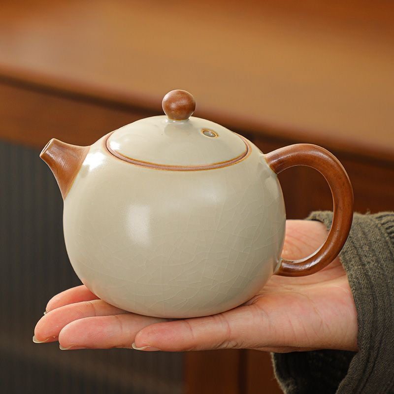 汝窑茶壶内置过滤网汝瓷开片可养功夫茶具陶瓷大号单壶红茶泡茶器