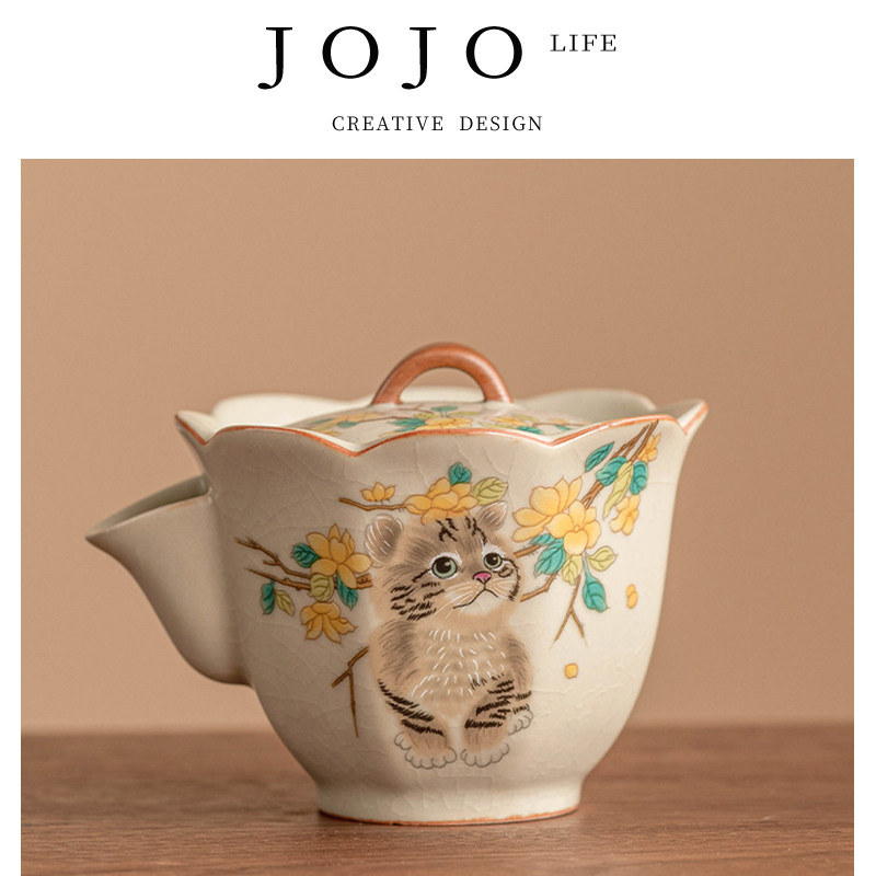 JOJO'S L. PD.Xiangtun.手绘黄花萌猫汝窑茶壶单壶中式壶 | 见义