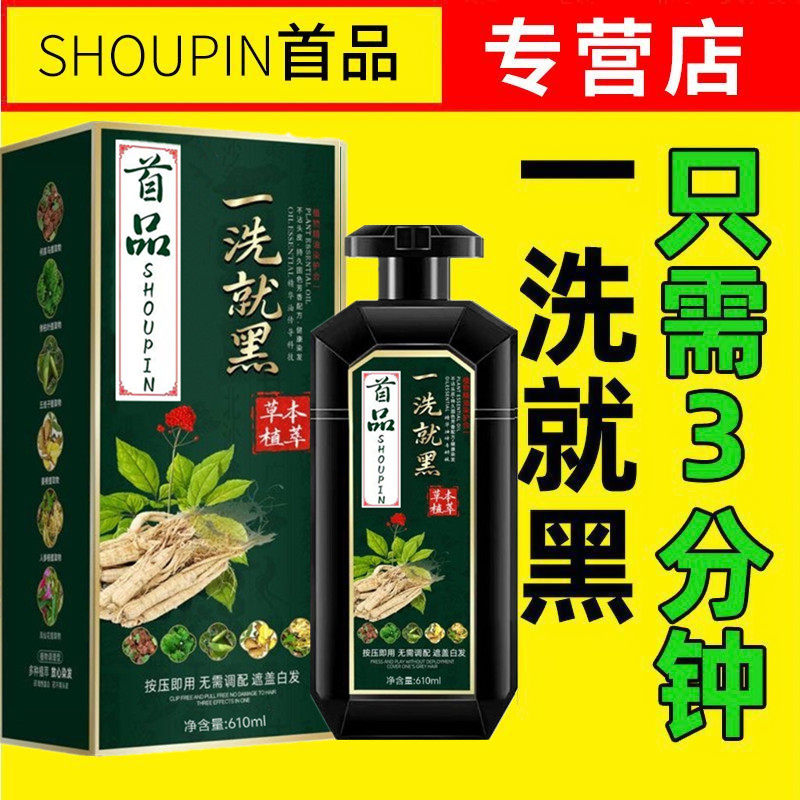 正品纯天然植物染发剂黑色清水白发一洗黑洗发水黑发焗油液自然黑