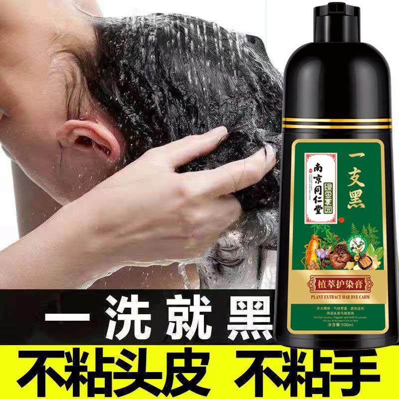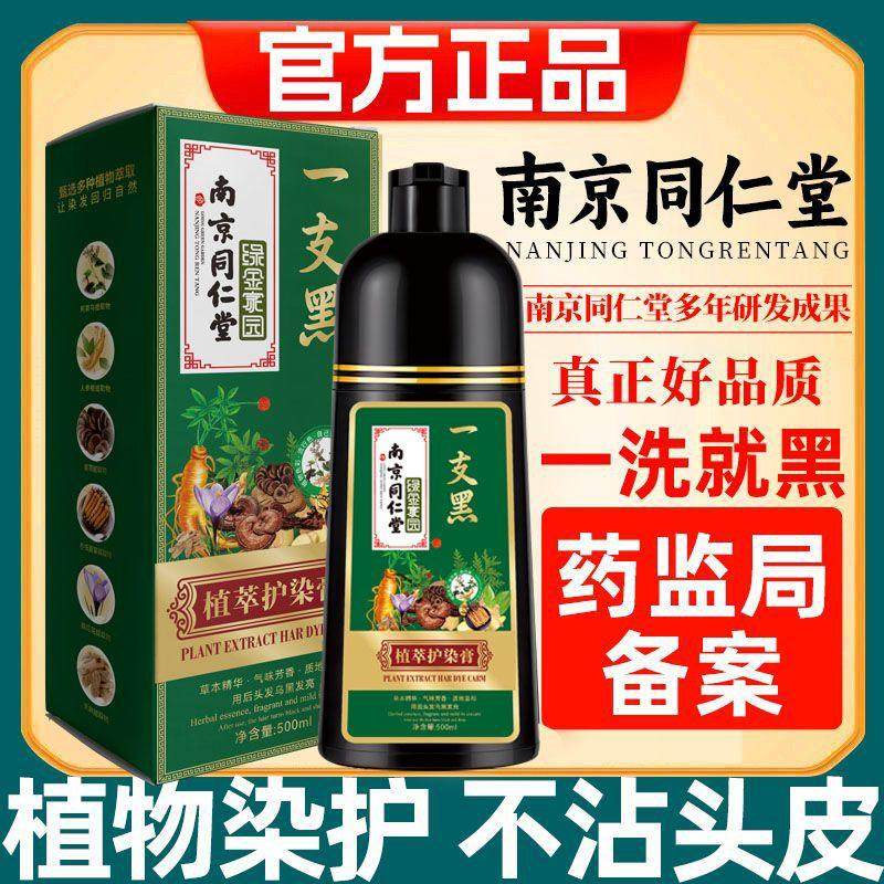 南京同仁堂纯天然植物染发膏一洗黑网红染发剂自己在家清水泡泡染