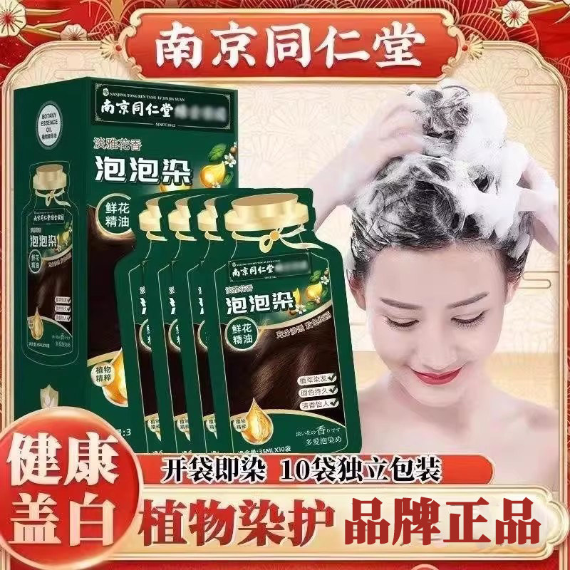 南京同仁堂纯天然植物染发膏独立袋装泡泡染发剂孕妇自己在家染发