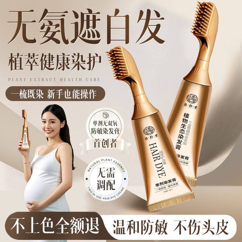 【小金管】染彩堂染发梳纯天然植物染发剂孕妇可用不沾头皮遮白发