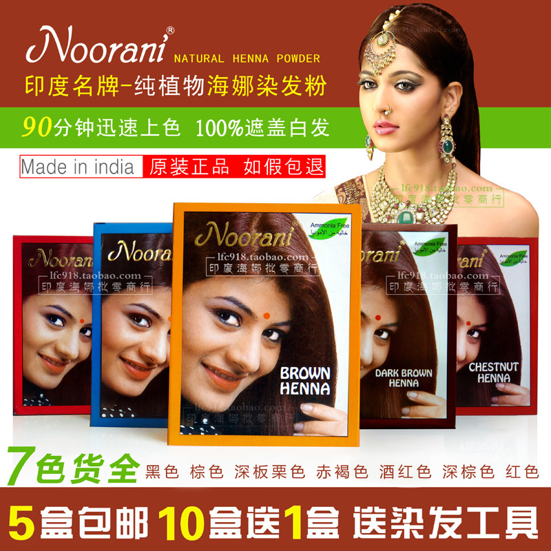 Noorani印度原装进口纯天然植物染发粉膏剂养发粉正品60g 5盒包邮
