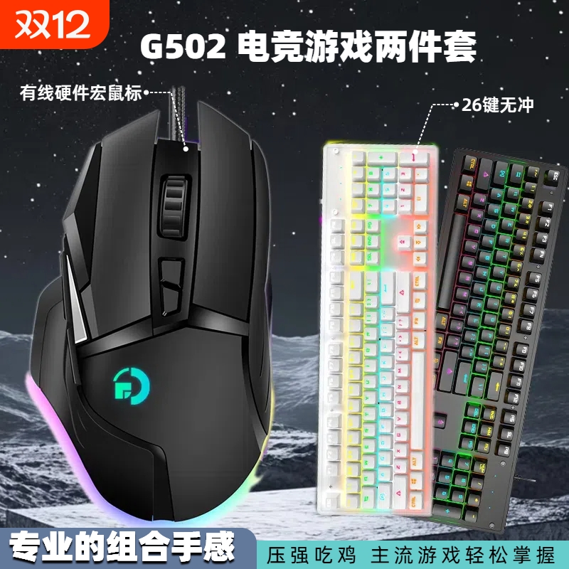 真机械手感游戏键盘鼠标套装金属吃鸡电竞CF薄膜键鼠有线电竞游戏