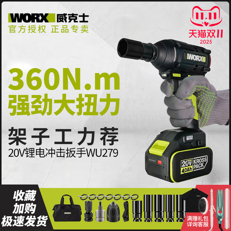 威克士电动扳手WU279无刷大扭力冲击风炮锂电电板手汽修架子工