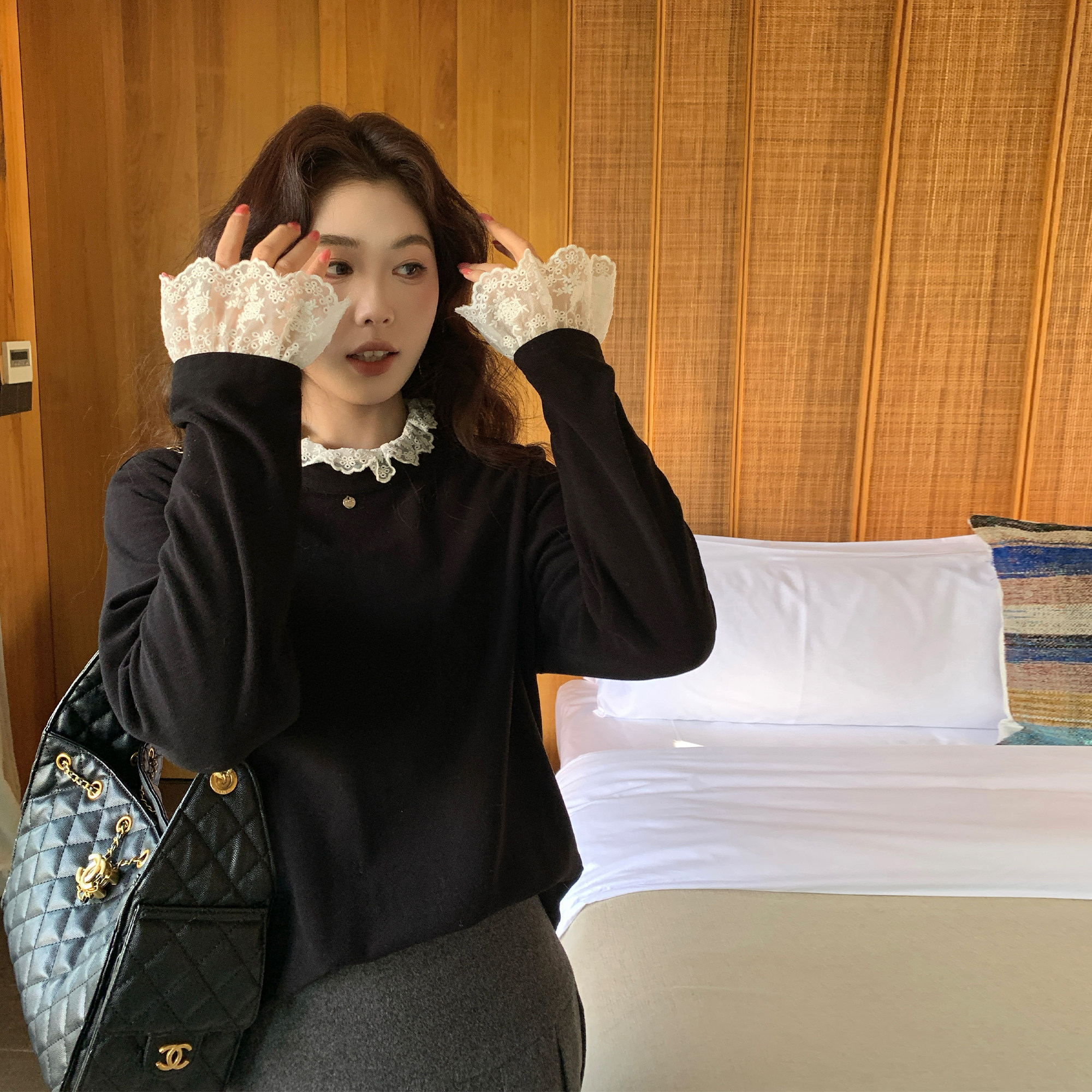 - 蕾丝衫女长袖秋冬