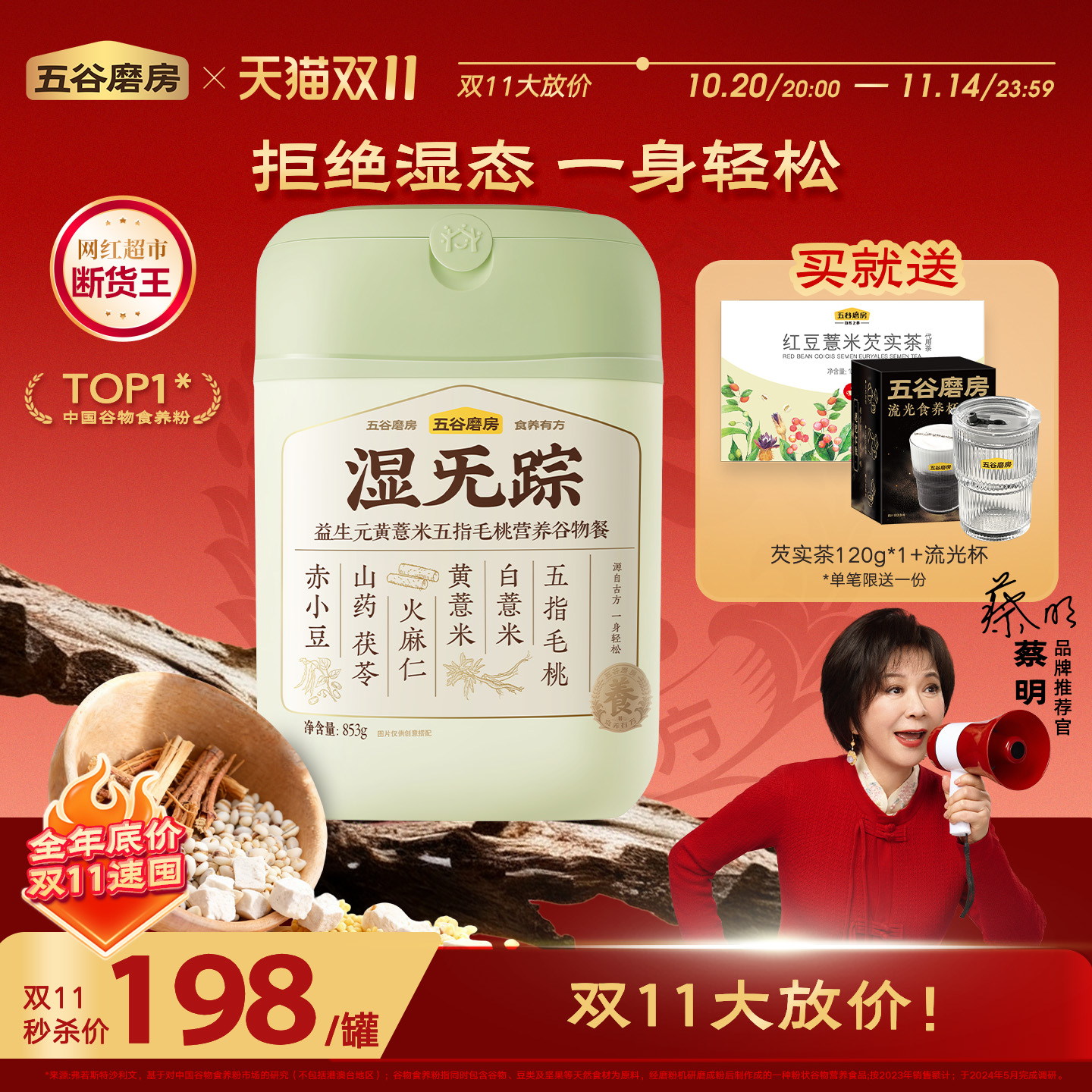 【百补】五谷磨房湿旡踪五指毛桃薏米祛湿粉代餐养脾胃营养去湿气
