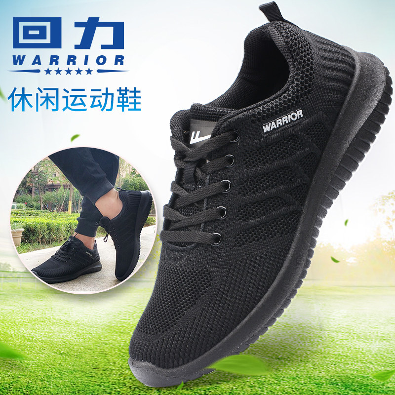 回力男鞋运动鞋青年网面鞋春秋季百搭黑色工作鞋轻便耐磨防滑鞋子