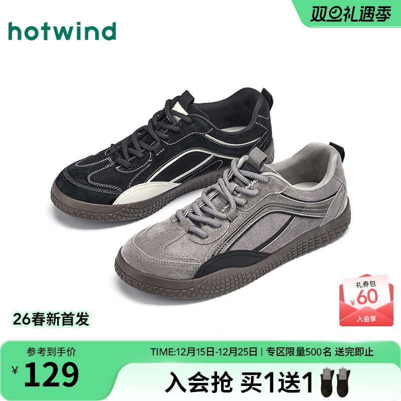 热风男鞋2026年春季新款男士德训鞋百搭板鞋通勤运动休闲赛车鞋子