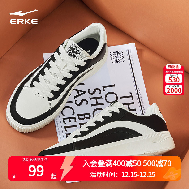 鸿星尔克飞鸿板鞋男鞋运动鞋春秋新款厚底黑白熊猫休闲潮鞋子男士