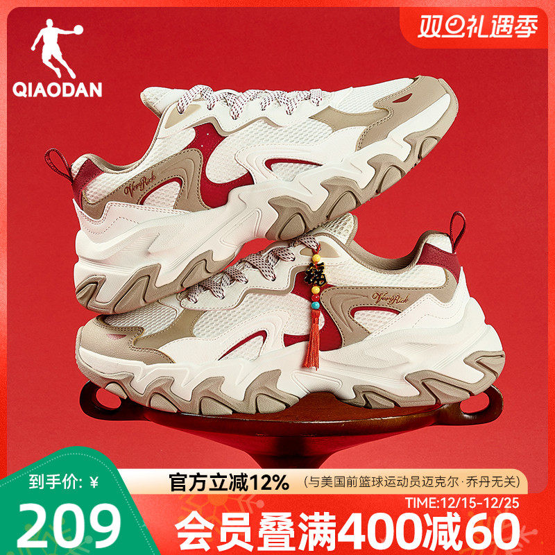 乔丹千层鞋新年红色老爹鞋男运动鞋2026春季厚底增高休闲鞋男鞋子