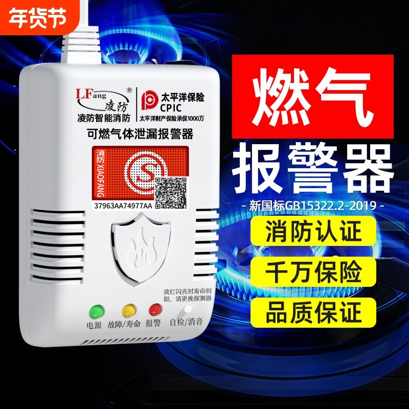 燃气报警器家用可燃气体厨房煤气天然气液化气消防认证泄露警报器