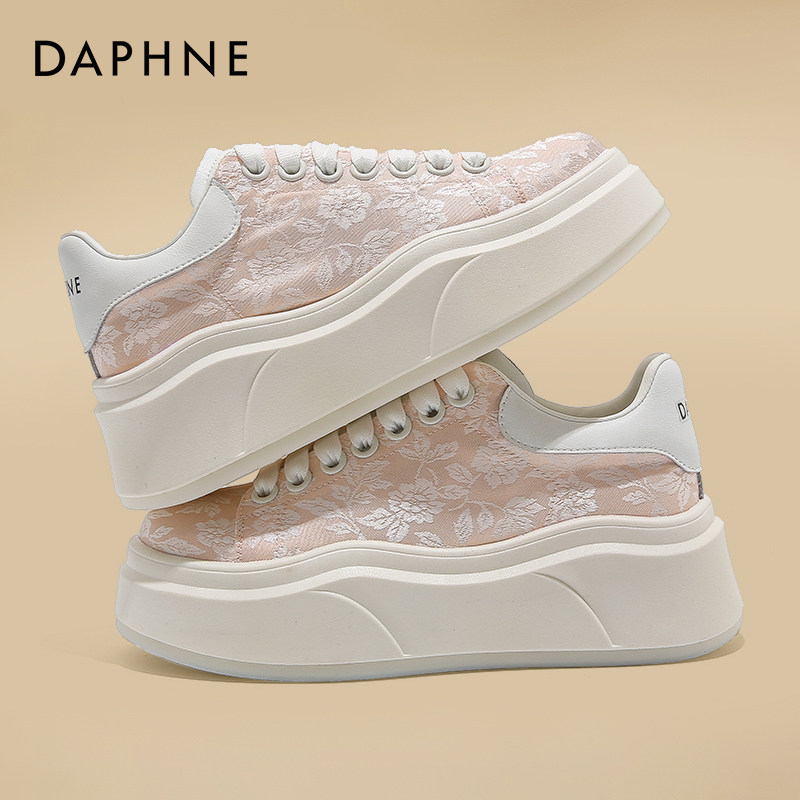 达芙妮小个子印花小白鞋厚底女鞋国潮百搭休闲板鞋2026新款高级感