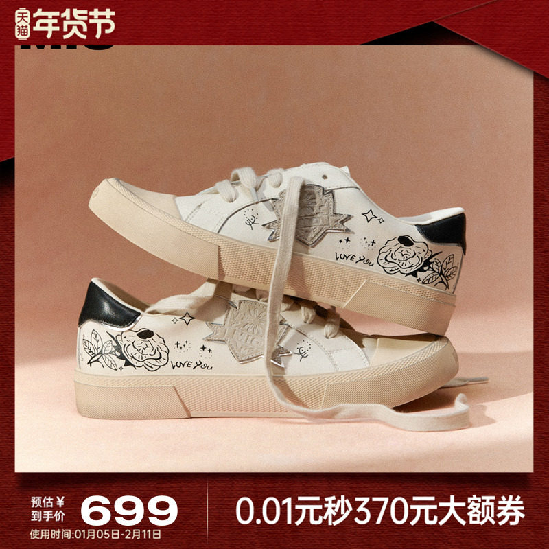 MIO米奥做旧脏脏鞋2025秋新款小白鞋厚底女鞋涂鸦鞋舒适休闲板鞋