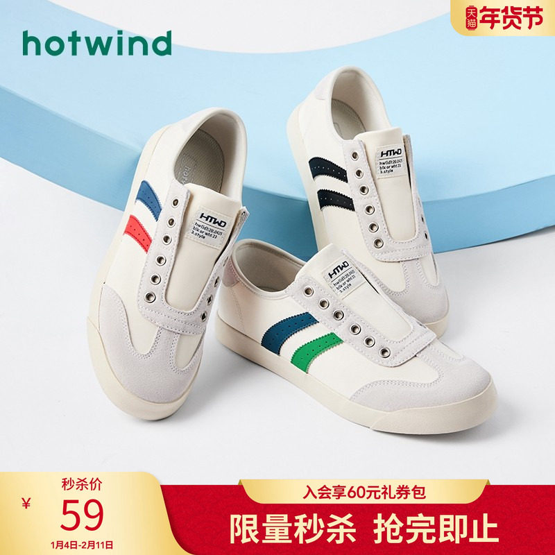 热风2024秋季新款男士潮流松紧带休闲板鞋运动百搭小白鞋厚底女鞋