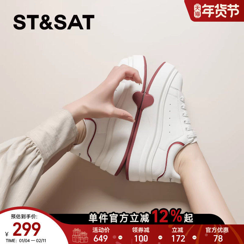星期六爆火爱心小白鞋厚底女鞋2025春季新款内增高软底休闲板鞋