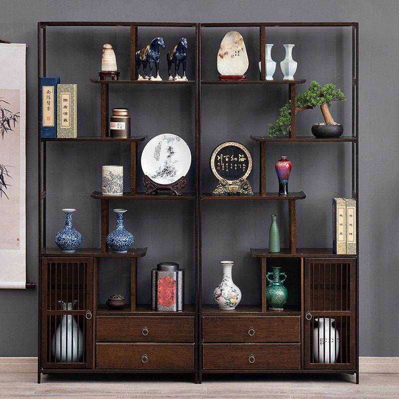 博古架全实木展示柜现代简约置物架新中式书架隔断榆木茶室多宝阁