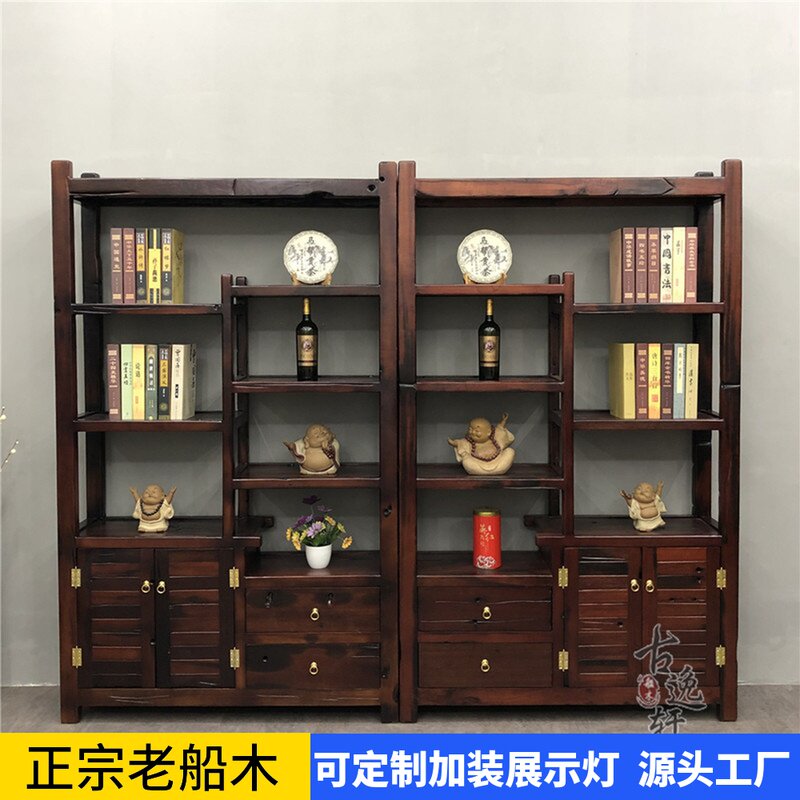 真老船木博古架实木置物酒架仿A古中式多宝阁茶叶书架隔断展示货