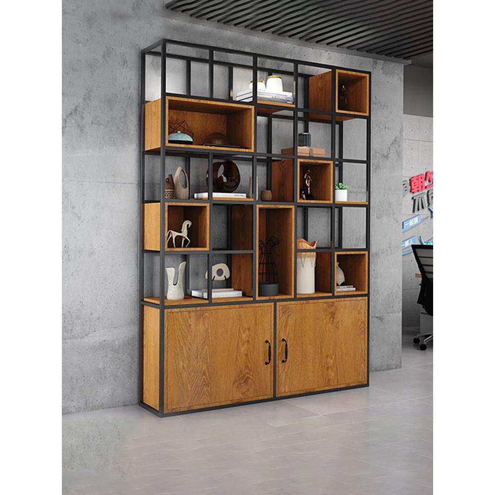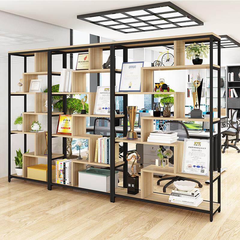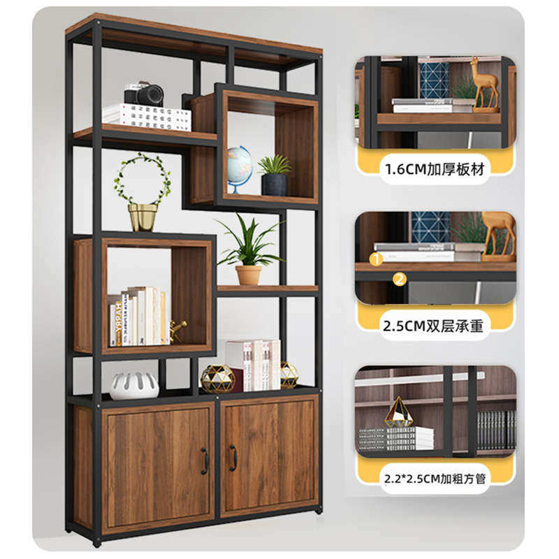 产品展示柜陈列柜博古架子铁艺书架一体靠墙办公室隔断置物柜货架