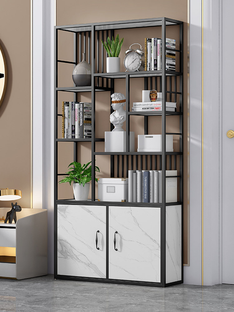 简约书架落地置物架客厅收纳零食隔断柜书柜办公室铁艺展示博古架