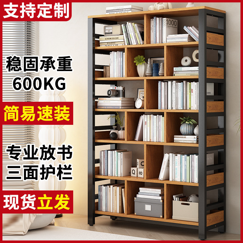 新中式铁艺书架现代落地博古架办公室书架隔断置物架工业风展示架