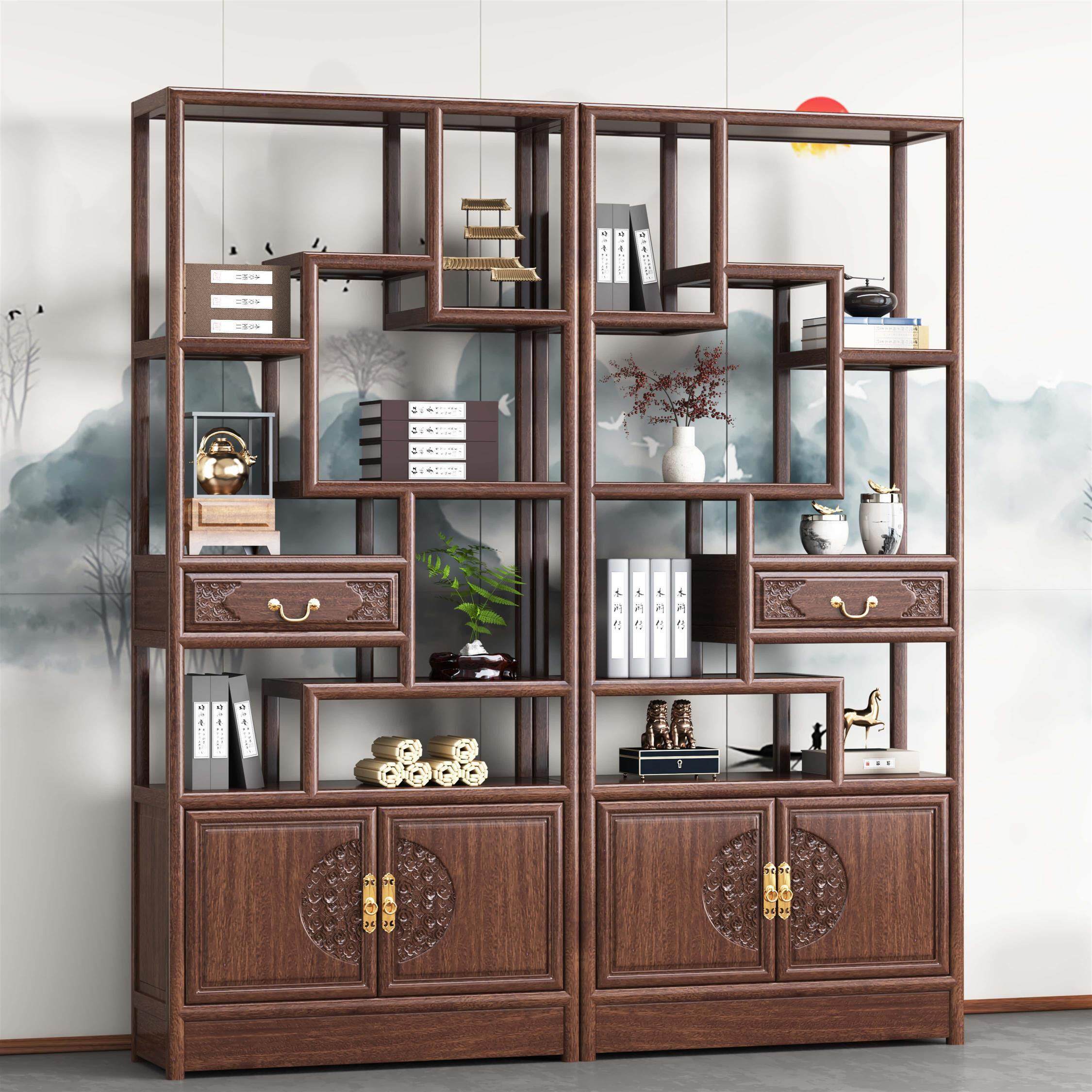 全实木博古架展示柜现代简约置物架新中式书架隔断彷古茶室多宝阁