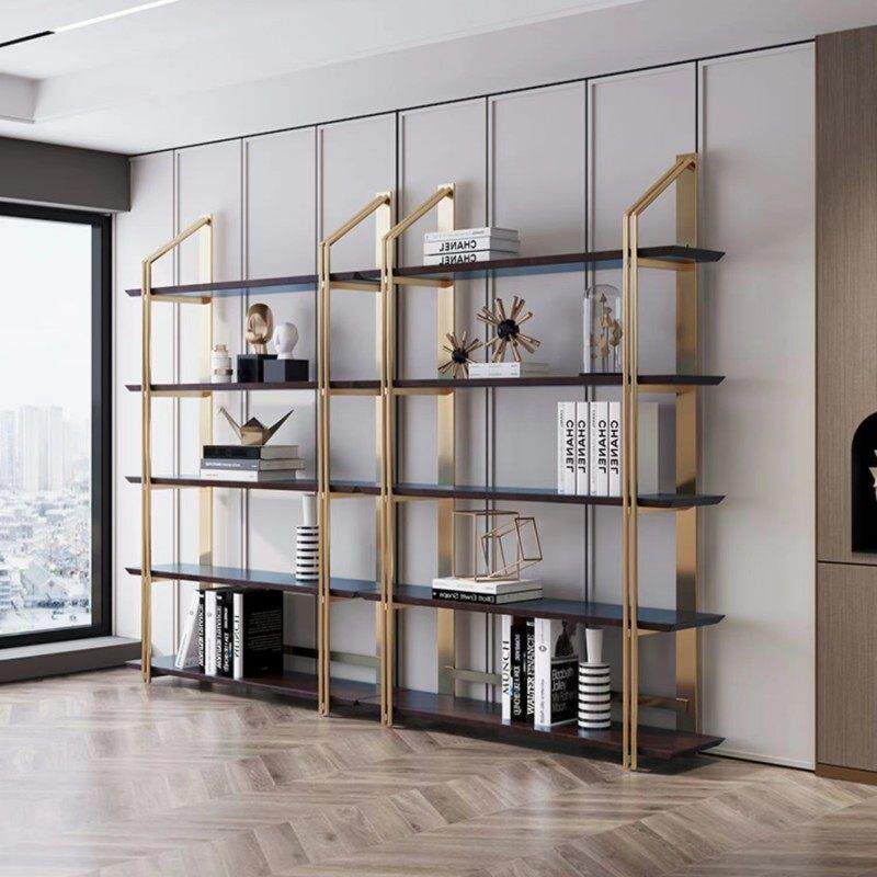 现代轻奢书架置物架落地办公室客厅设计创意不锈钢书架隔断展示架