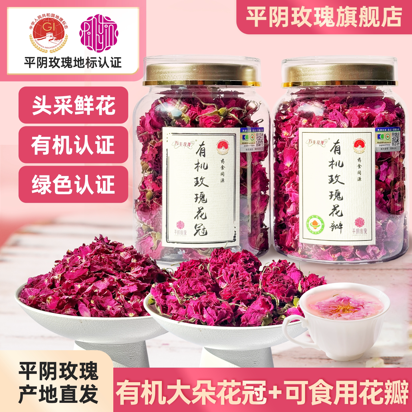 玫瑰花茶平阴干花泡茶干玫瑰花瓣食用重瓣玖瑰散装茶包官方旗舰店