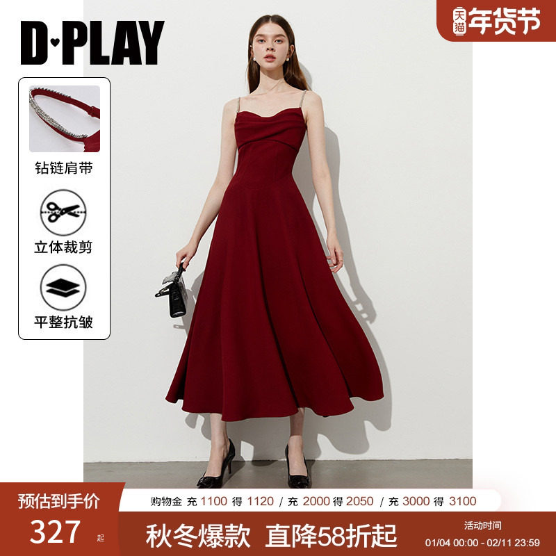 DPLAY2025年秋季新款红色连衣裙女法式新娘结婚订婚吊带裙礼服