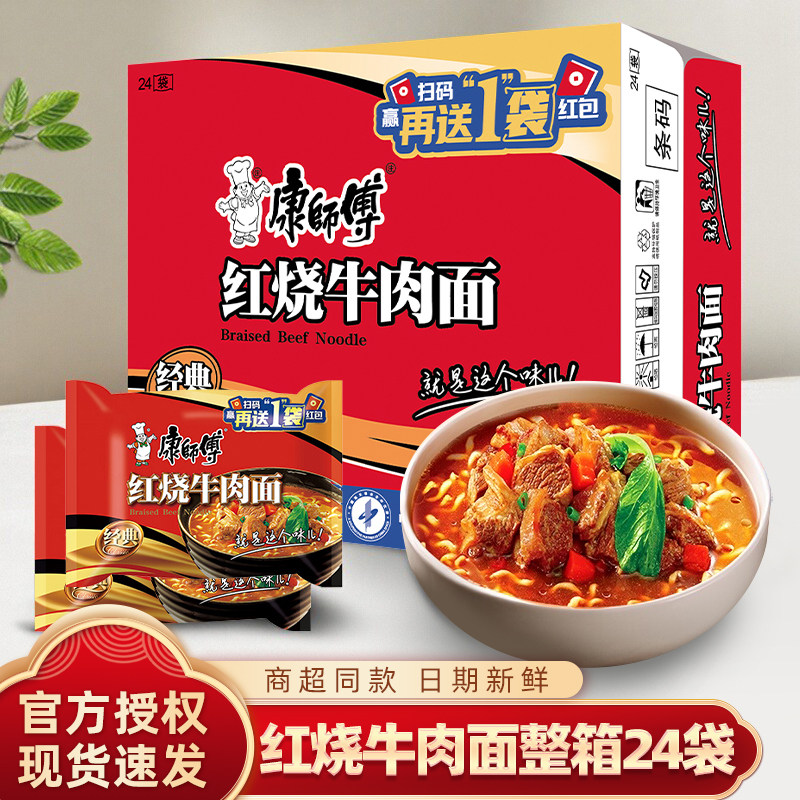 康师傅方便面整箱装批发泡面袋装劲爽红烧牛肉面速食品旗舰店官网