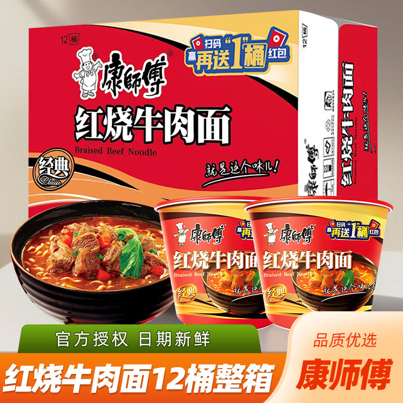 康师傅红烧牛肉面12桶装整箱批发方便面泡面学生宿舍夜宵方便速食