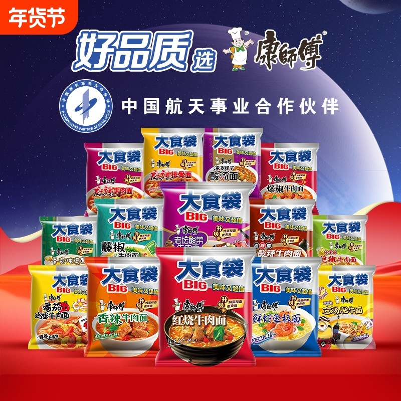 康师傅方便面批发整箱泡面袋装大食袋红烧牛肉混搭夜宵旗舰店官网