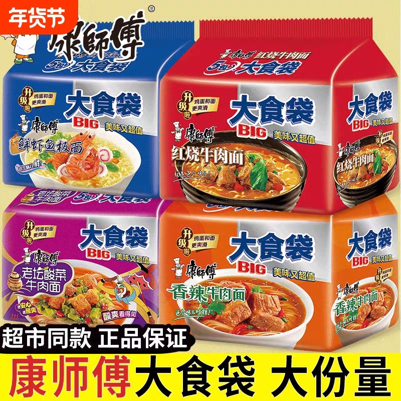 【5袋包邮】康师傅红烧牛肉面香辣老坛酸菜大食袋方便面泡面拉面