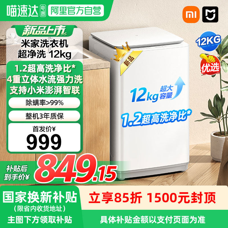 小米米家12kg全自动洗衣机波轮租房宿舍家用智能版大容量洗脱一体