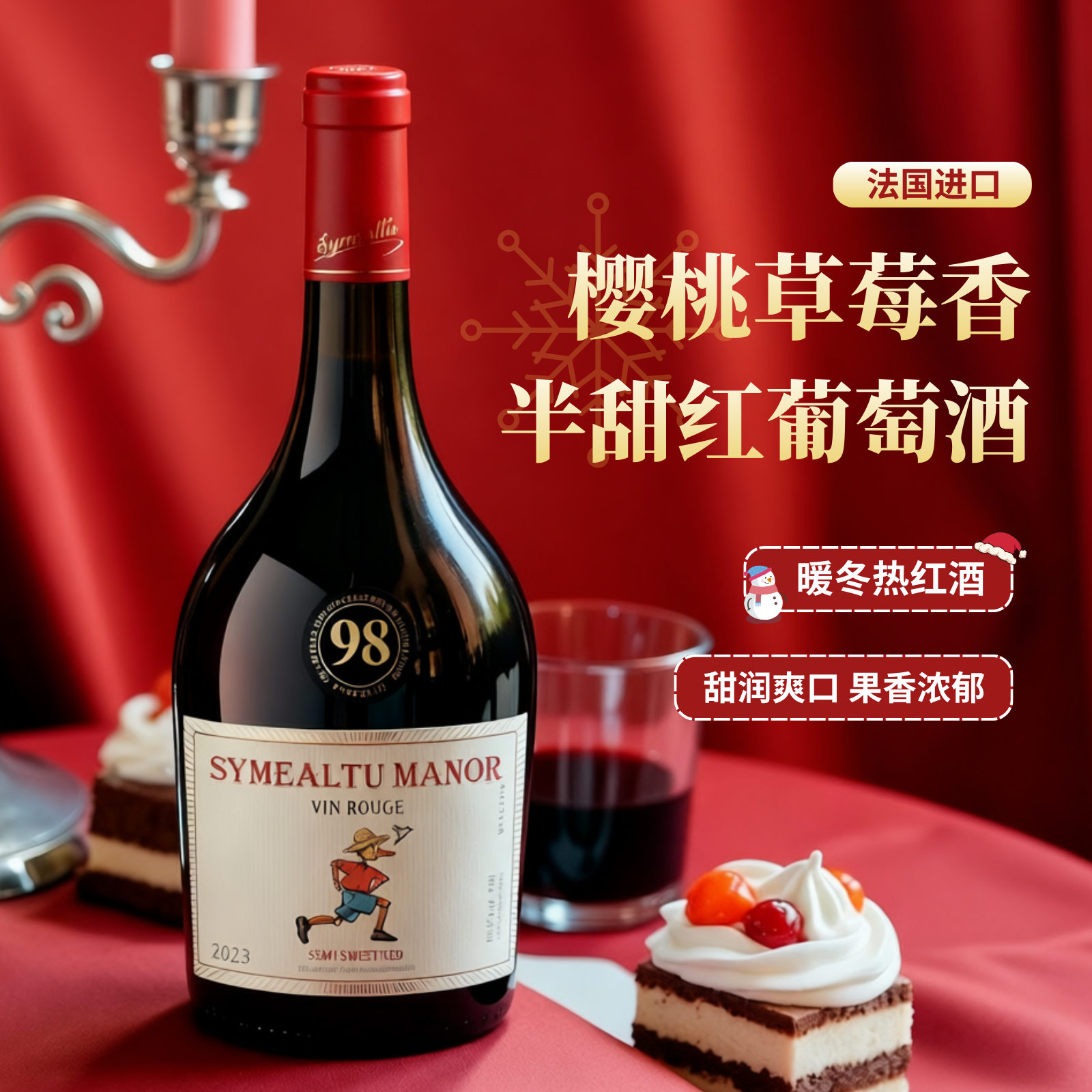 法国原酒进口半甜红葡萄酒热红酒女士微醺果酒热红酒圣诞节送礼物