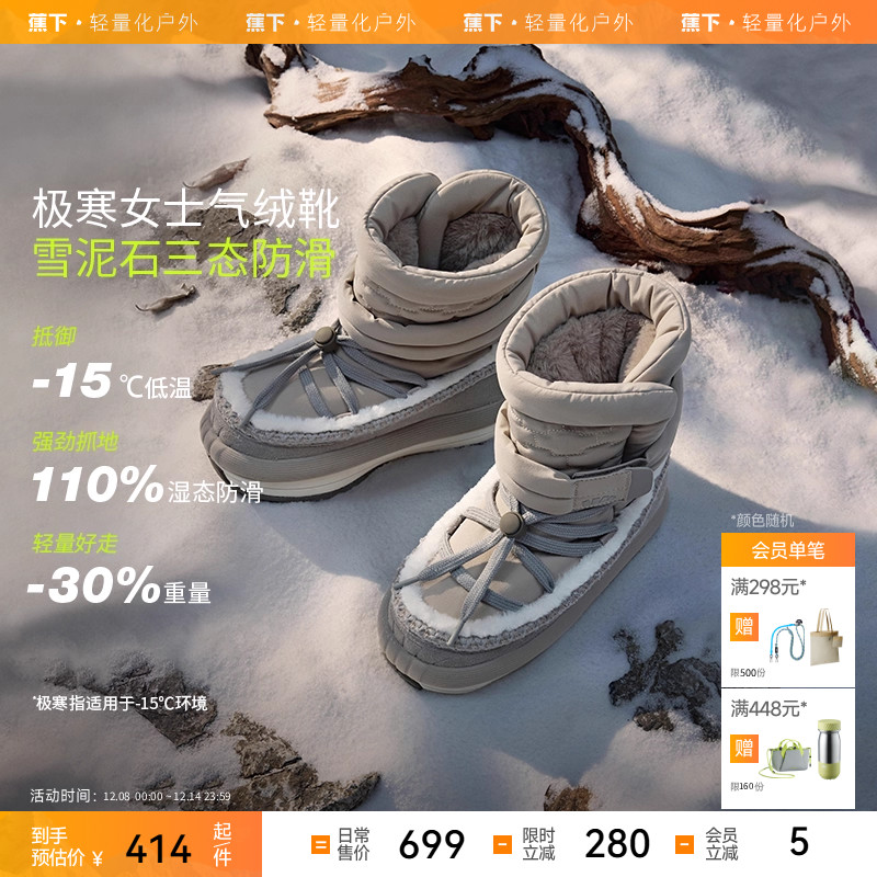 蕉下女士户外保暖防滑气绒靴CL80824冬季雪地靴情侣鞋子厚底棉鞋