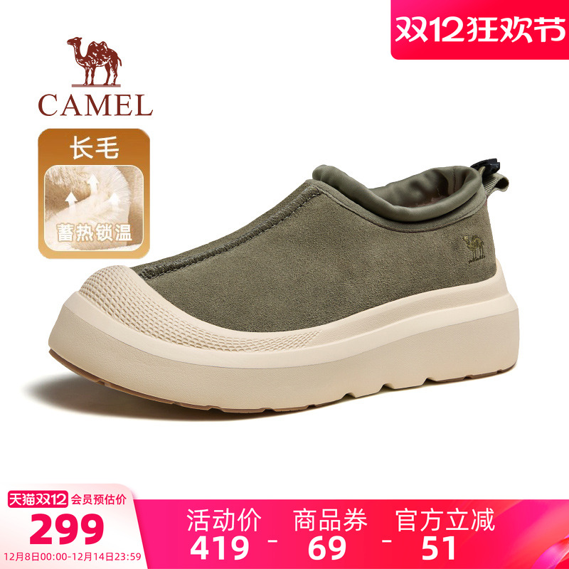 骆驼女鞋2025冬新款防水防滑加绒鞋棉鞋毛毛鞋情侣增高保暖雪地靴