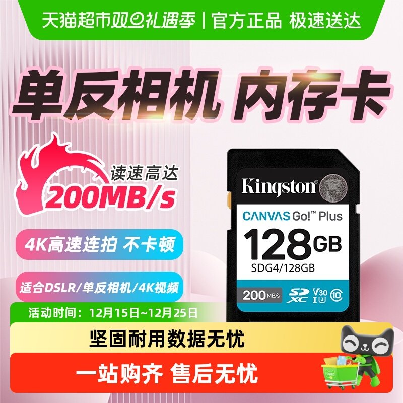金士顿官方128G相机内存卡256g高清4K索尼佳能富士尼康通用卡sd卡