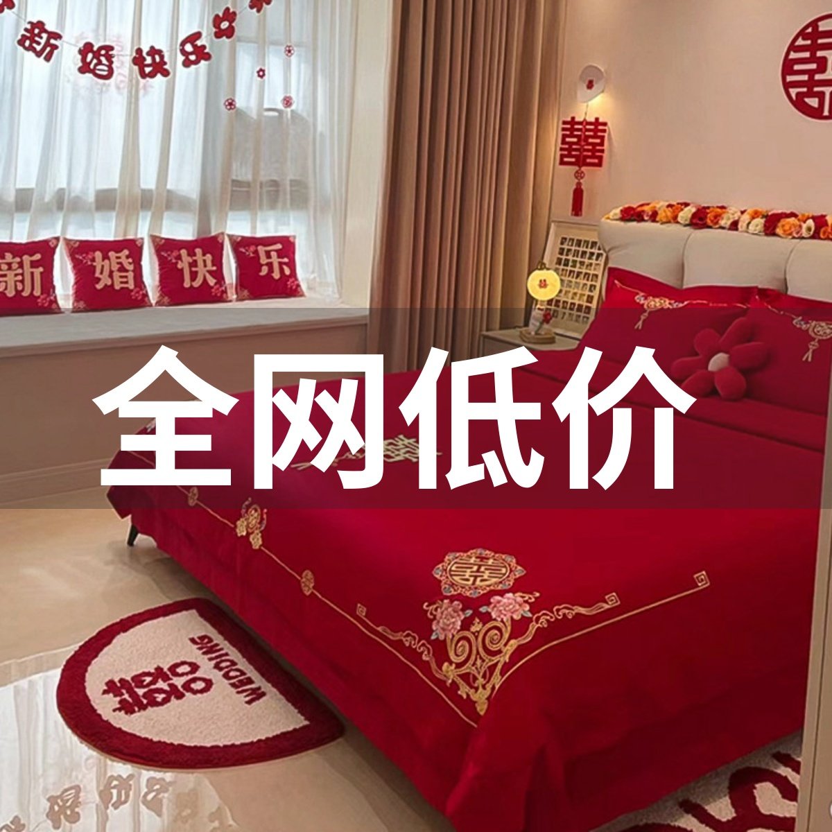 - 婚庆四件套大红色