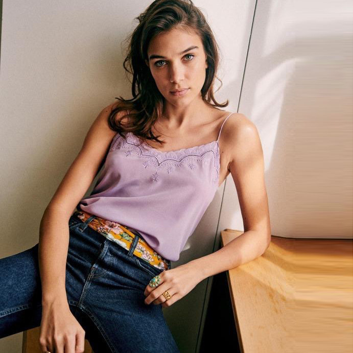 25春夏装新款女装重工刺绣法式细腻砂洗桑蚕丝绣花真丝吊带背心