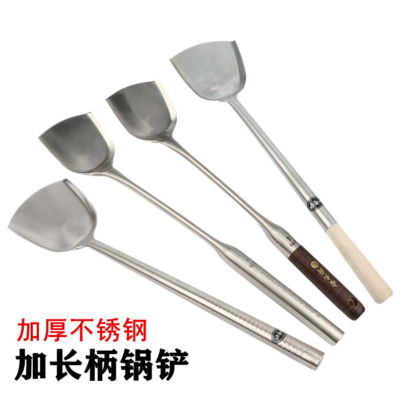 加厚304不锈钢铲长柄钢铲不锈钢炒铲钢柄锅铲木柄铲厨师炒勺铲子
