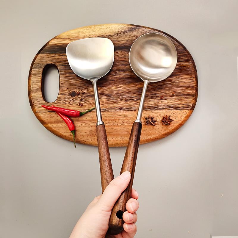 304不锈钢炒铲炒勺锅铲炒菜铲子家用厨具套装鸡翅木柄长柄汤勺