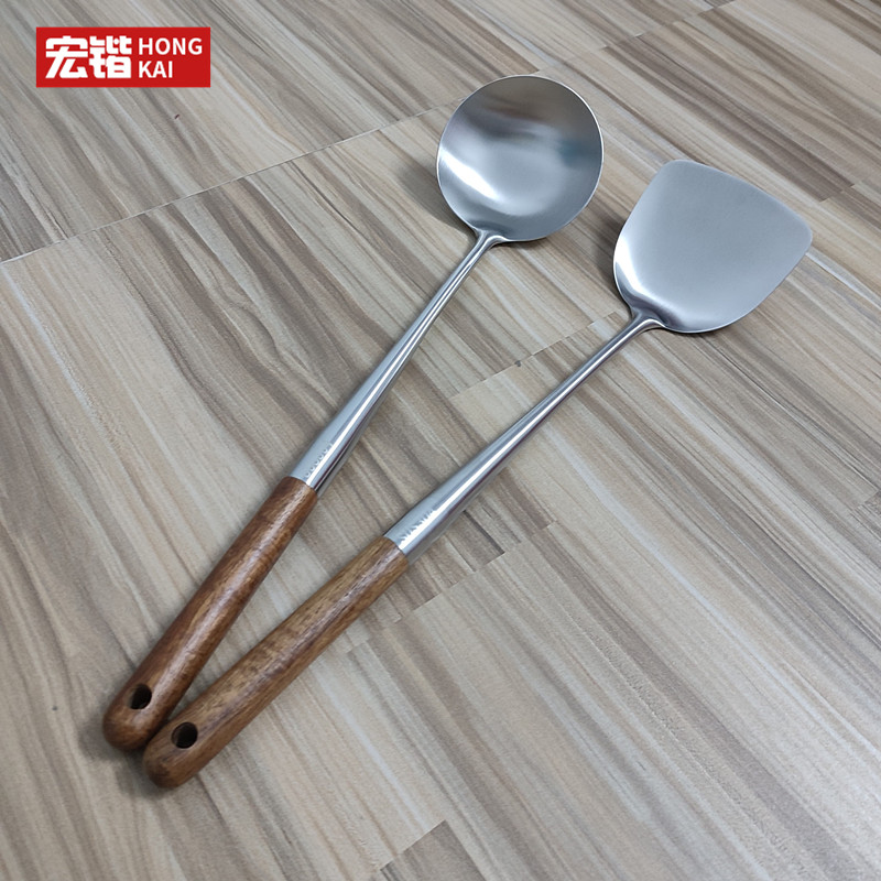 304不锈钢炒铲厨师专用炒菜防烫勺子木柄家用长柄汤勺大漏勺煎铲