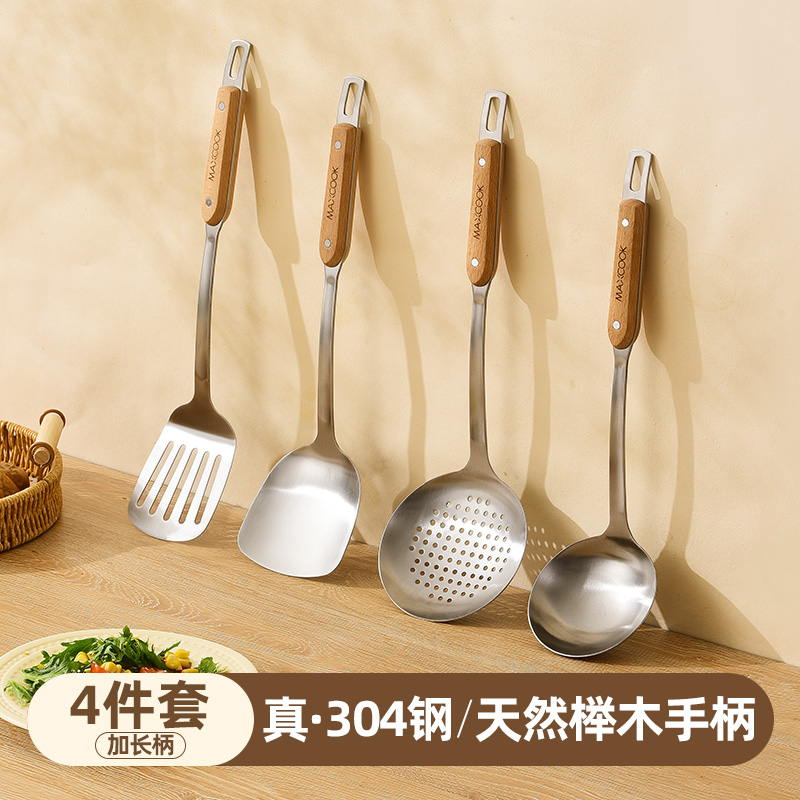 304不锈钢炒铲炒勺加长柄家用隔热防烫炒菜铲子汤勺厨房专用套装
