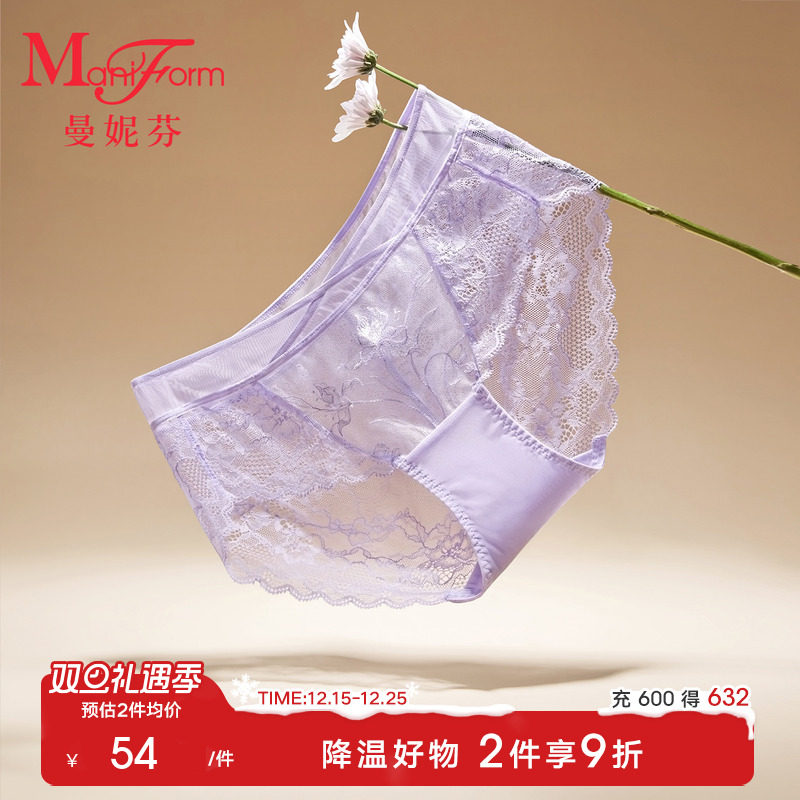 109元2条曼妮芬性感低腰蕾丝内裤轻盈透气底裤女轻薄纯棉底裆