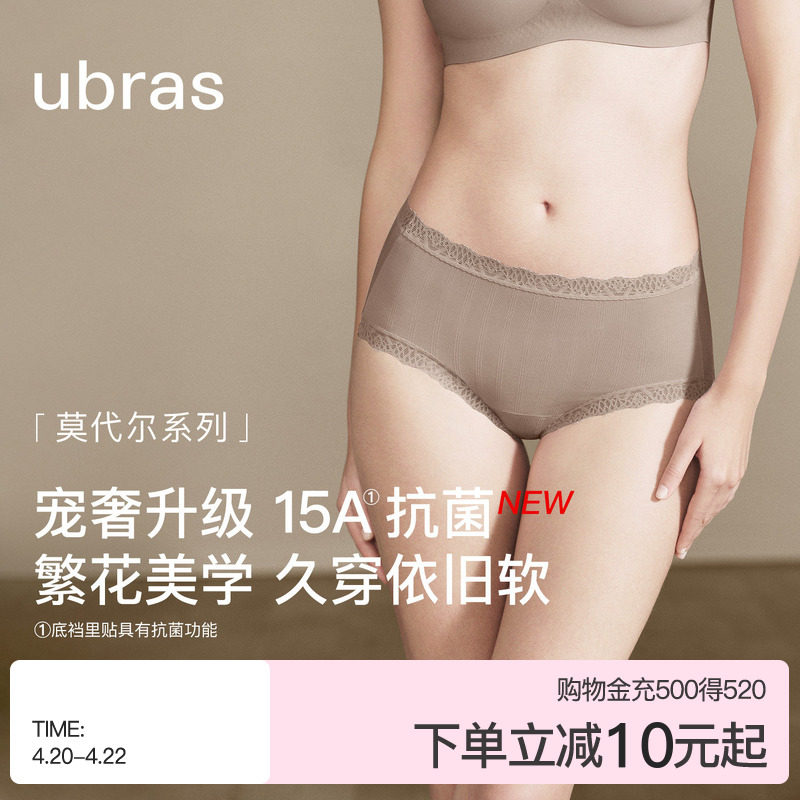 ubras莫代尔蕾丝花边内裤纯棉15A高倍抗菌底裆女士透气中腰三角裤