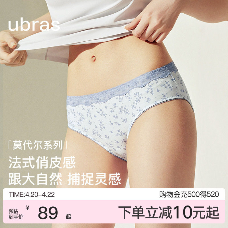 ubras法式碎花内裤女莫代尔抗菌裆浪漫蕾丝印花低腰透气三角短裤