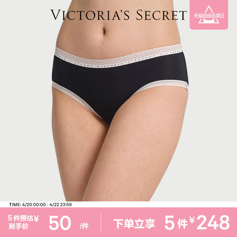 5件248|维密天丝莫代尔7A抗菌内裤LOGO蕾丝舒适中腰三角裤女26春