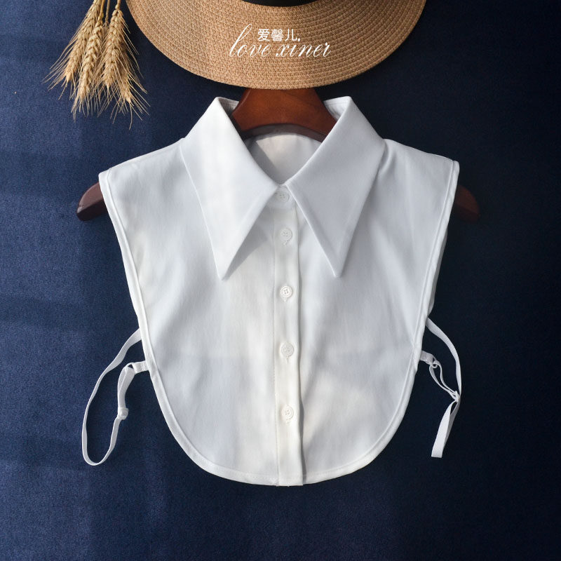 百搭长款假领子女士衬衫装饰多功能衣领纯棉白色衬衣打底内搭上衣