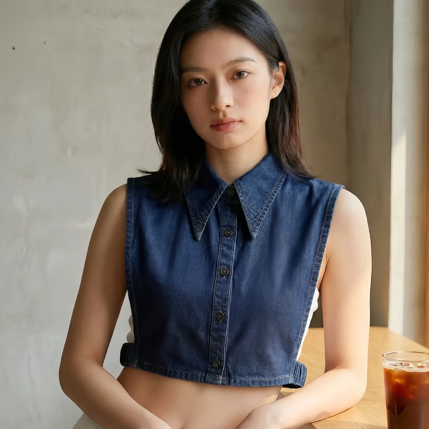休闲纯色高端牛仔尖领假领子秋冬内搭百搭女士假衬衫领深色牛仔色